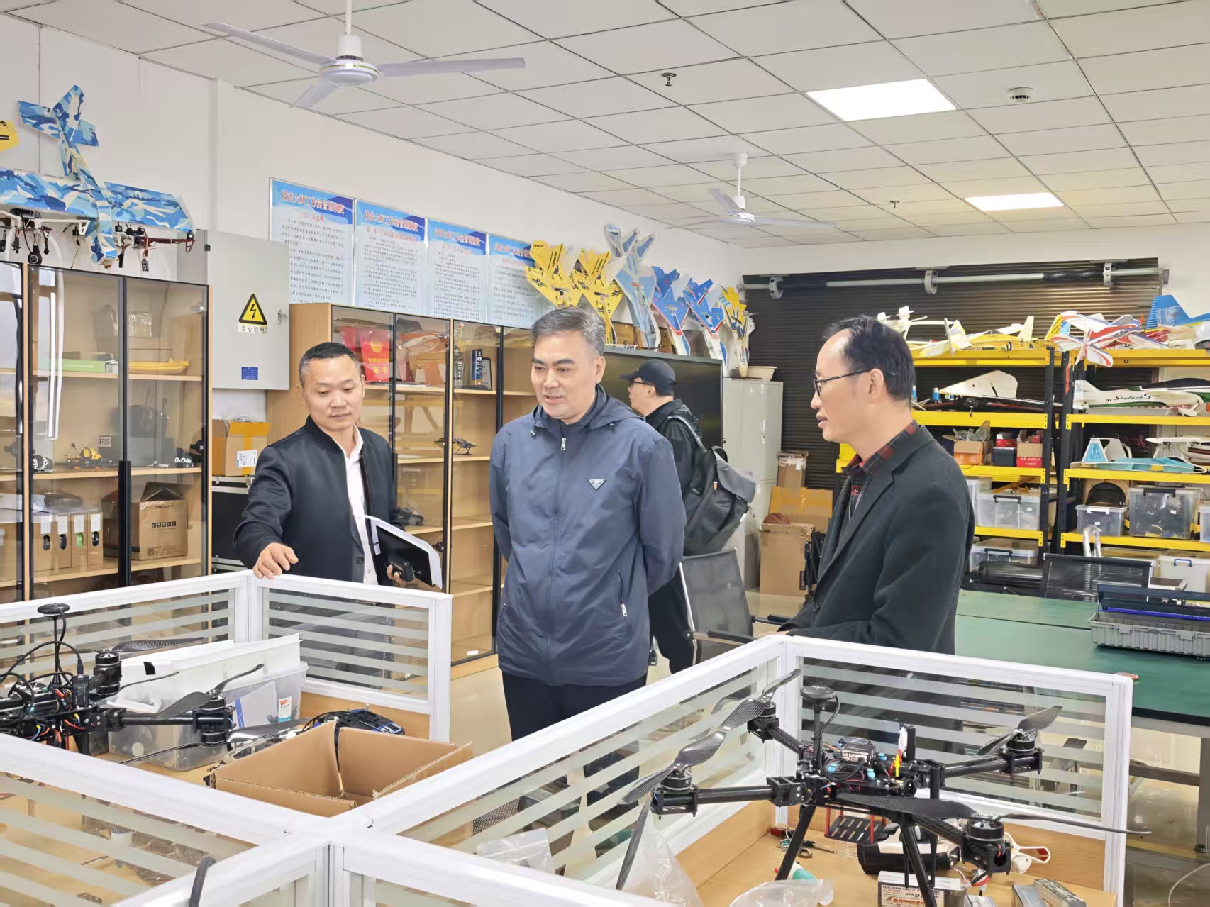 当天上午,团队抵达贵州航天职业技术学院后,在学院电子工程系党总支书记、主任董泽芳的热情接待下,开启实地考察环节。团队先后走进无人机实训宿舍、设备间与室外训练场,全方位了解该校无人机培训项目的硬件保障与教学管理情况。